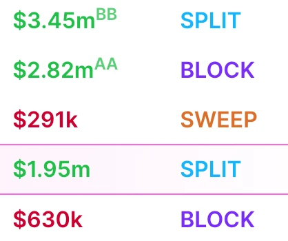 What is a “SPLIT”, “SWEEP”, and “BLOCK” trade?
