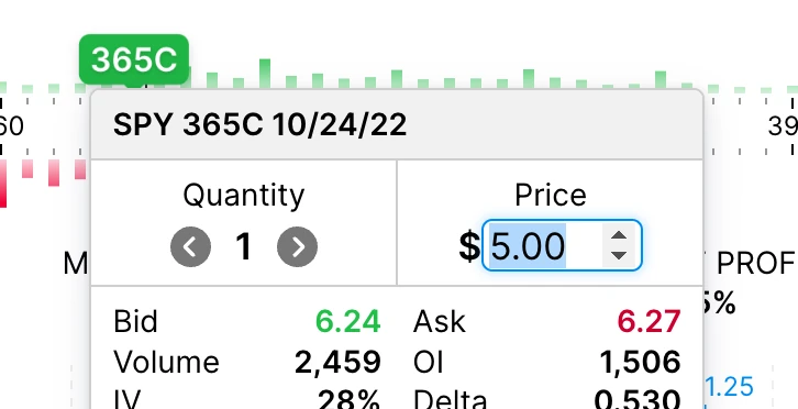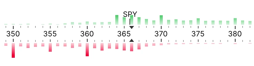 Quickly find the most active options! Our premium volume overlay feature allows you to easily see where liquidity is concentrated. Options with more volume are more active and will likely have better prices and be easier to buy and sell.